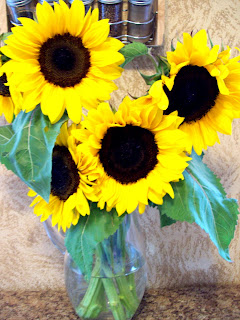 I’m seriously considering planting these ginormous flowers next year, because they are so lovely. They just make me smile. I put them in a large, glass pitcher. Very summery. I did plant a few smaller sunflower varieties, so I’m looking forward to them blooming.