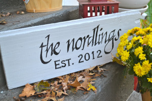 Our friends Brad and Jamie got married back in March and had a lovely wedding reception for friends and family over the last weekend. I wanted to give them something homemade as part of the gift. And I was feeling pretty confident in my sign-making abilities from last week’s sign-making workshop. Jen is a pretty […]