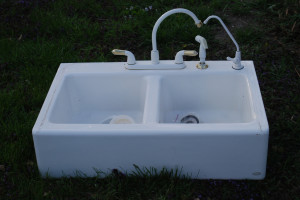 Do you remember this beauty? A lovely Kohler apron-front sink that we found on Craigslist last June for $50. I love it. Unfortunately, my pocketbook is not a friend of the farmhouse sink. Once I began getting quotes on kitchens, it was clear that the sink may not work in the house. First, the problem […]