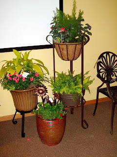 Here are some of the containers that were used in the demonstration. If you are interested in the types of plants, I can tell you because the lovely ladies gave us notes (SCORE!).