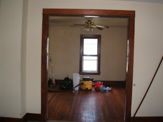 The dining room is the only room that had the original hardwoods showing. But, they were still not in the greatest shape.