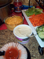 By far, the star of the evening was the buffalo chicken dip (the yellowish dip by the veggies above). You must try it. It was sinfully delicious. Thanks for the recipe, Laura.