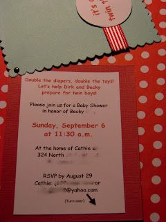 My lovely aunt is hosting a baby shower for her daughter-in-law, who is expecting TWIN BOYS. (Gasp! Two…boys…together? YIKES!)