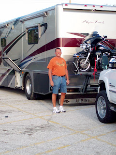 Oh, and did I mention they drove it home from Arizona pulling a Harley and a truck? It made me laugh, so I took a picture of my dad with it. I told him he should make a sign that says “I (heart) Retirement” on the back for a few laughs.