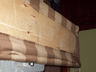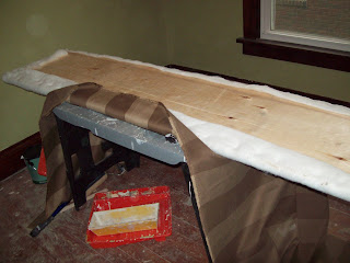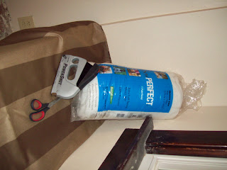 Batting, staple gun, scissors and fabric of your choosing (I picked up this pretty striped upholstery fabric on clearance for $3.99).