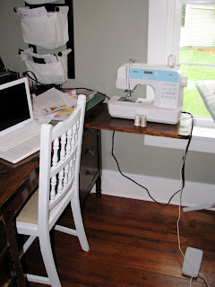 Speaking of sewing – I found this nifty little drawer on Ryan’s antique desk that’s perfect for the sewing machine.