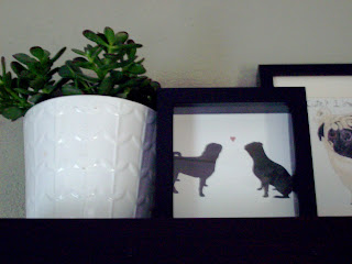 I love that you have pug pictures 🙂 It shows your personality! And those little potted succulents complete the shelf~