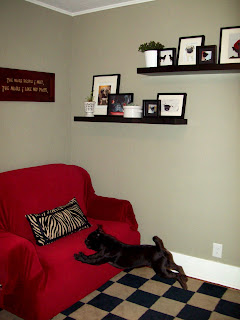 I’m still working to get to 100%, but we made good progress this weekend after a chance visit to Ikea. Ikea is about 2 1/2 hours away from me, so I’ve only been there a handful of times. I stopped in on Saturday and walked out with some frames and a few Lack shelves. I’ve been coveting larger shelves since I saw them in G&D’s Dining Room. Then, I came across This Young House’s Dining Room.