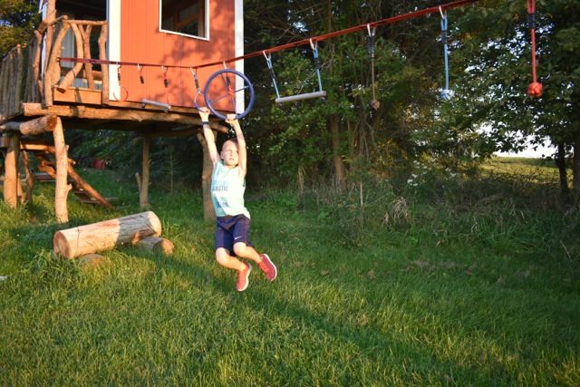 First up on the tour – his ninja line. This was pretty much the only gift he wanted for his sixth birthday, and it really kickstarted the entire structure when he received it from his grandparents. (This is the ninja line we have – affiliate link.)